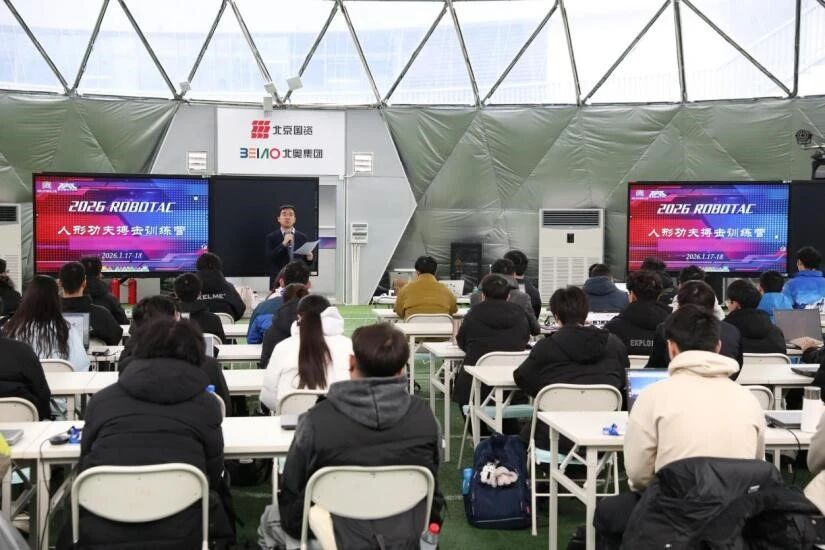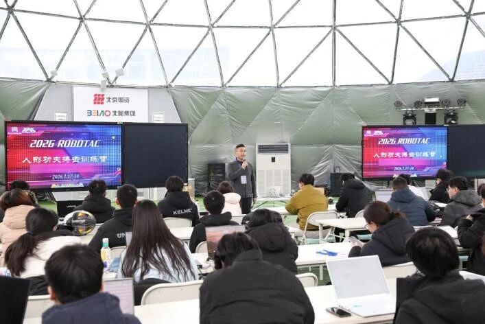 2026年1月17日至18日,北京新年首场降雪伴随寒潮如约而至,位于“冰丝带”的北京人形机器人赛训基地1号馆“熊猫眼”里却热闹非凡,2026全国大学生机器人大赛ROBOTAC人形功夫搏击赛培训会在这里成功举办。